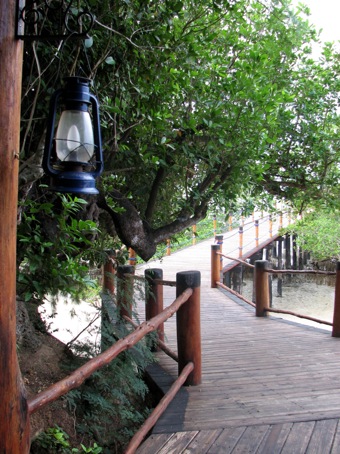 | This was one of the first mzungu hangouts I was introduced to in Zanzibar. A small, upmarket resort just a kilometer down the beach from the school, and only a 5 minute bike ride from my flat. The hotel is built next to the site of an old Christian mission now called 'Mbweni Ruins' and has a 100m long pier jutting out into the water so guests can walk out past the mangroves to swim at low tide. |